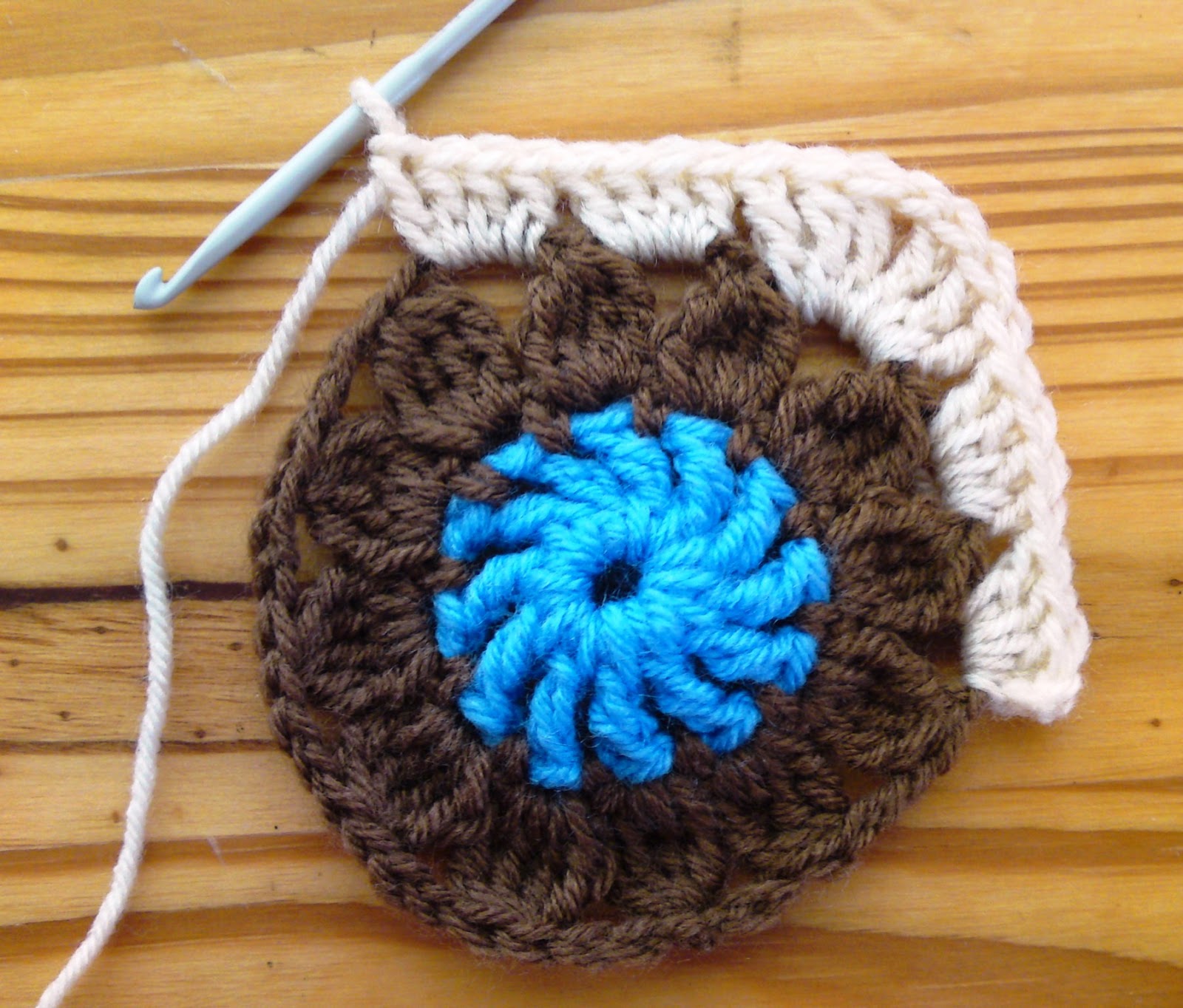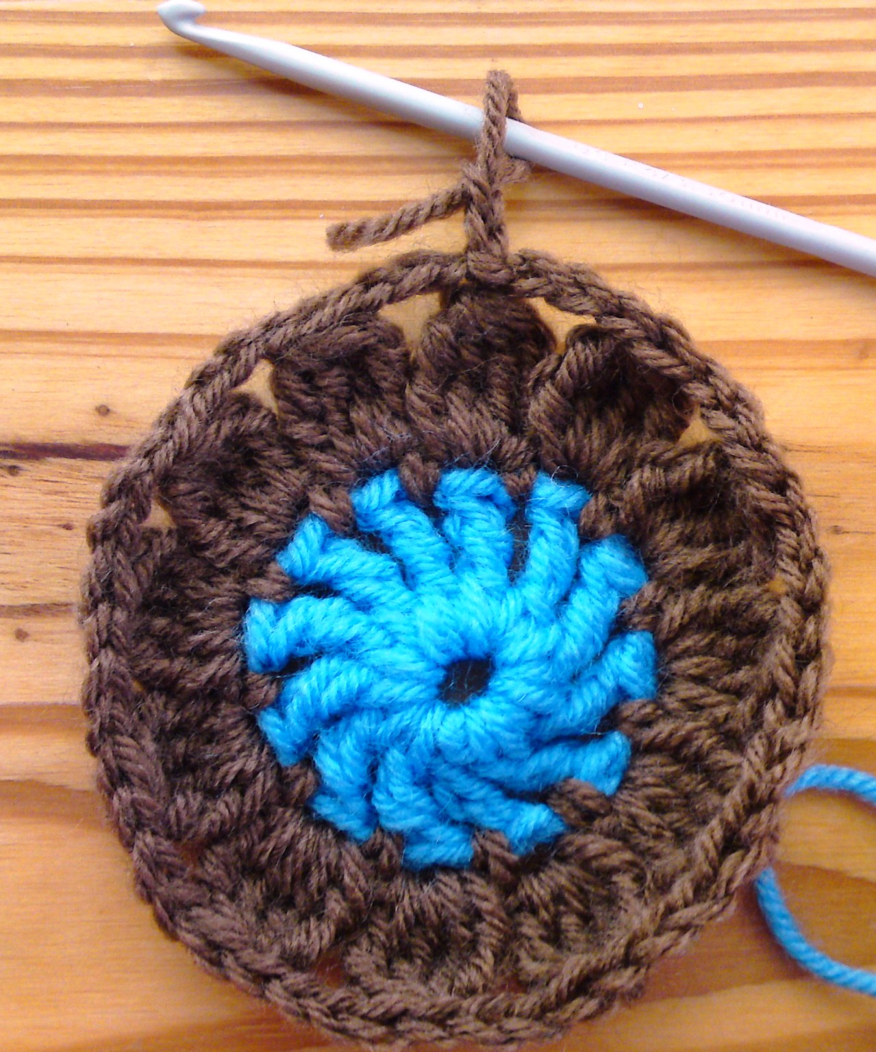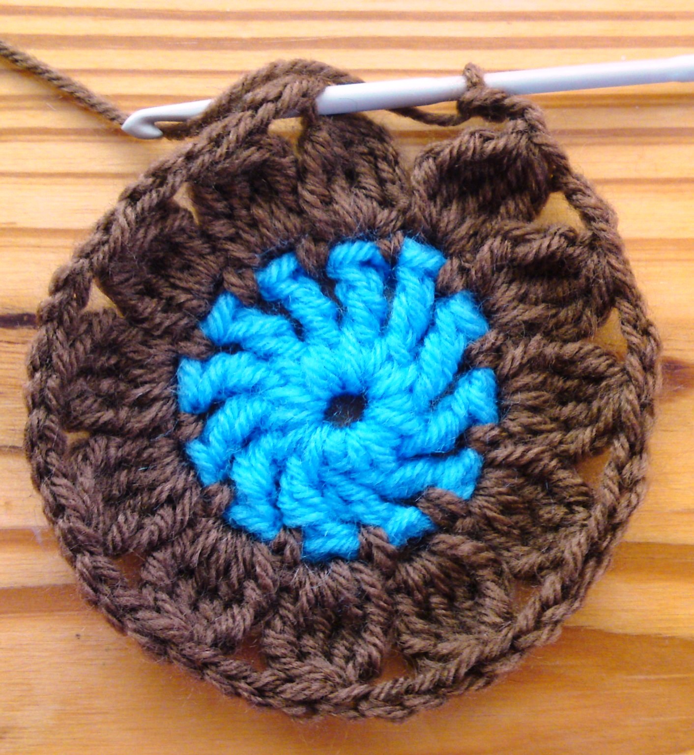 | 19) fazendo sempre uma corrente entre cada ponto alto duplo do círculo azul |