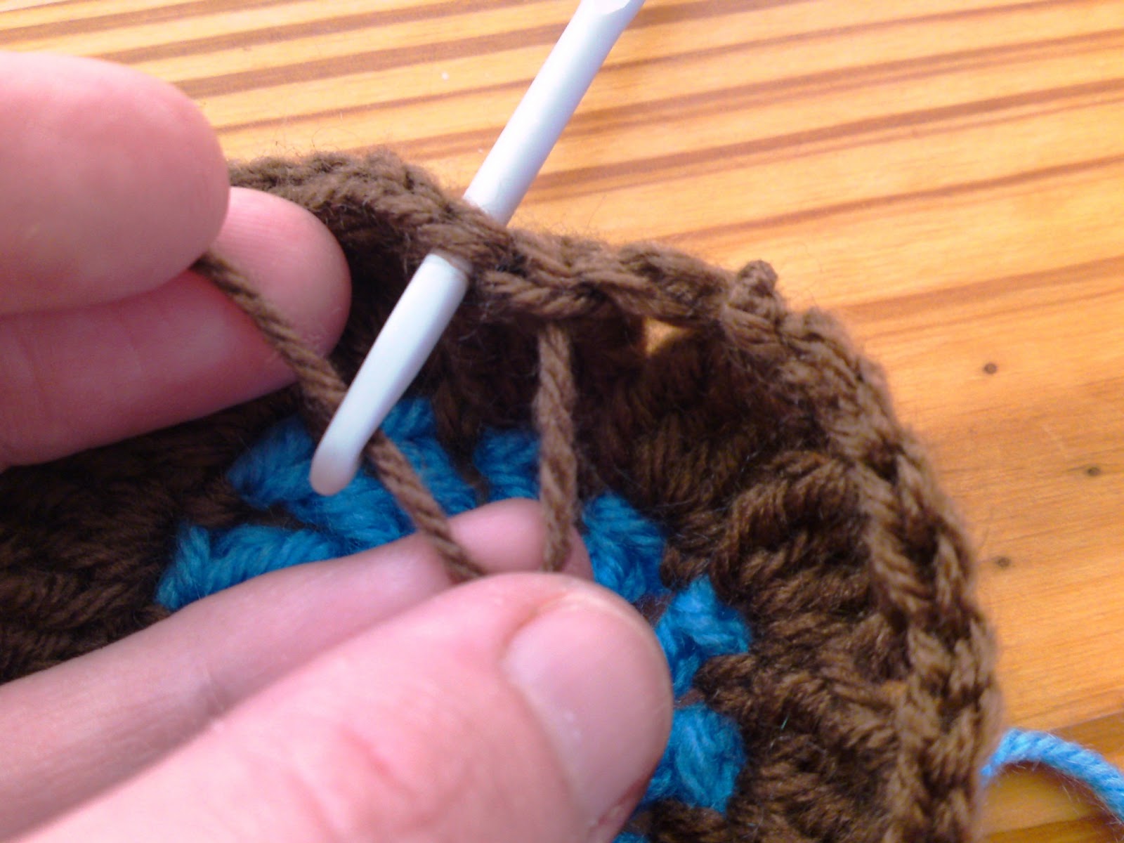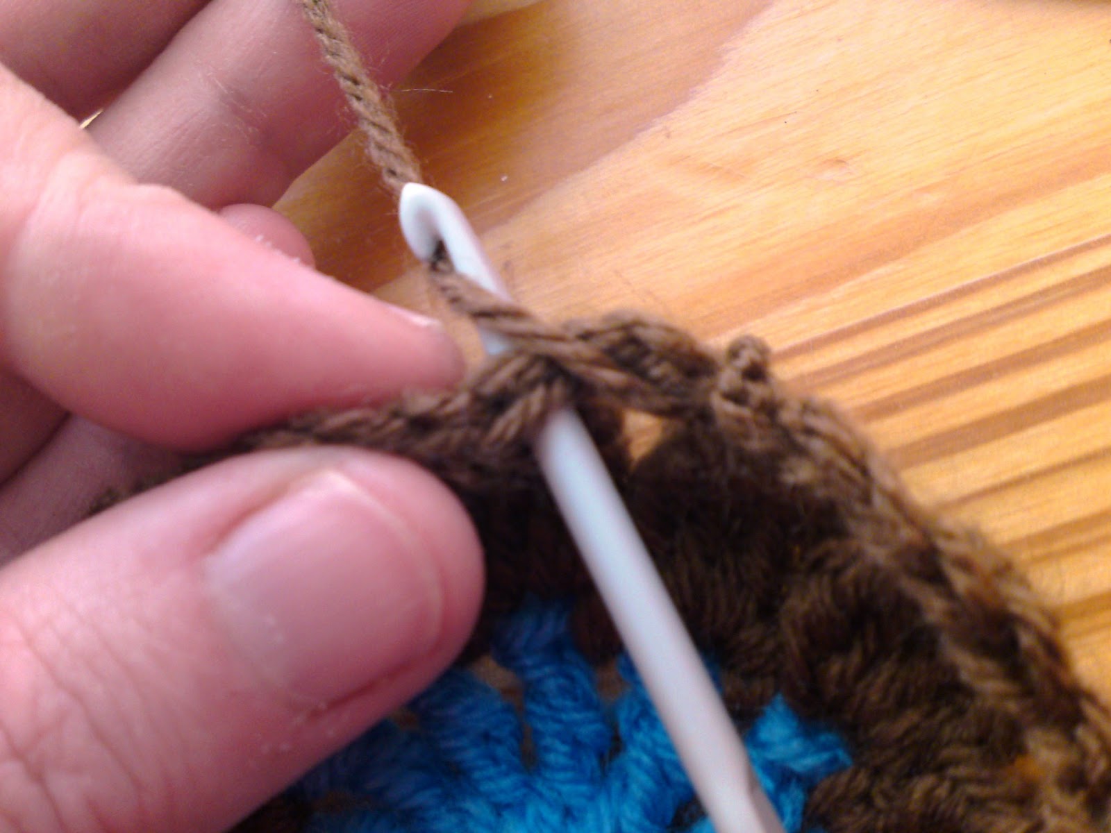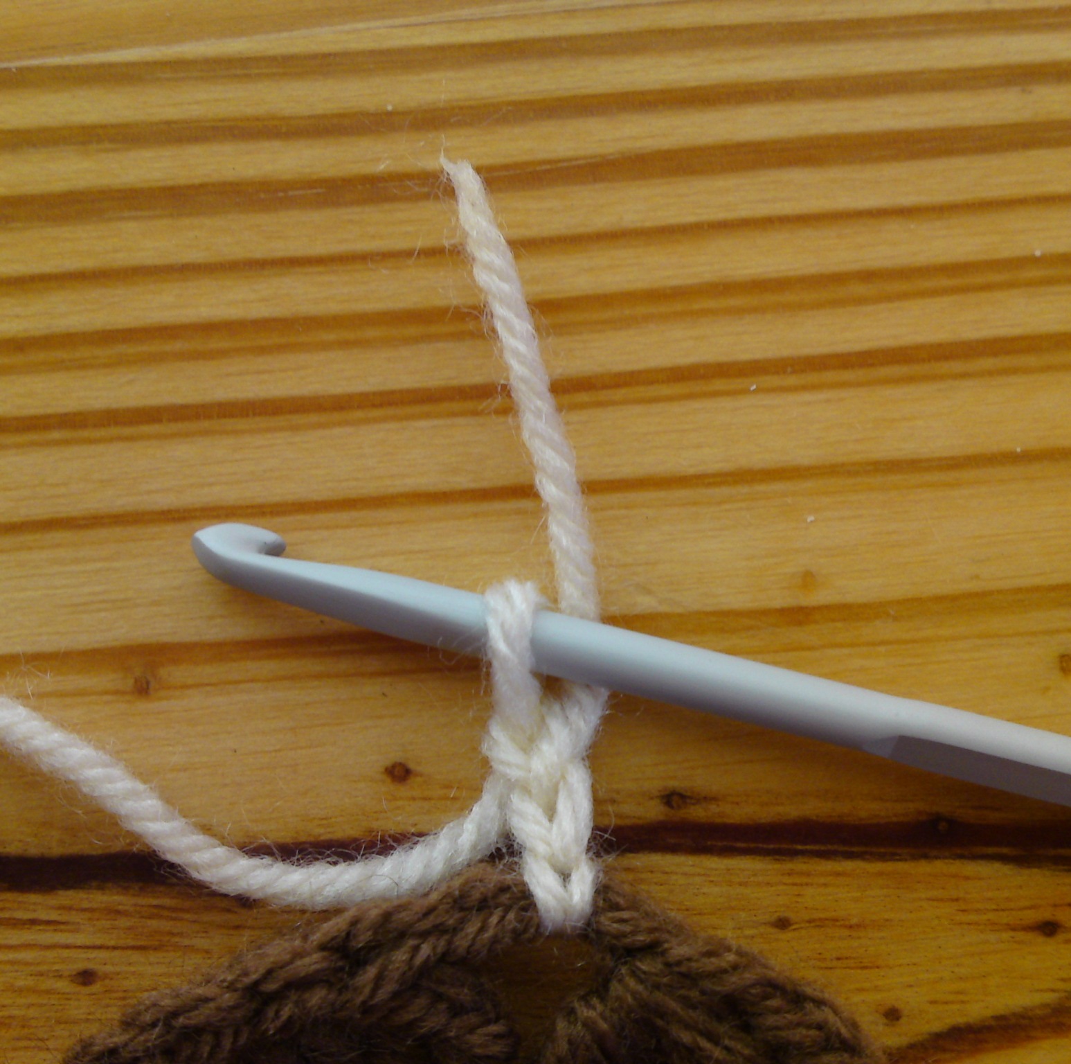 | 21) passando por dentro do arco feito pela 1ª corrente do início desta carreira castanha |