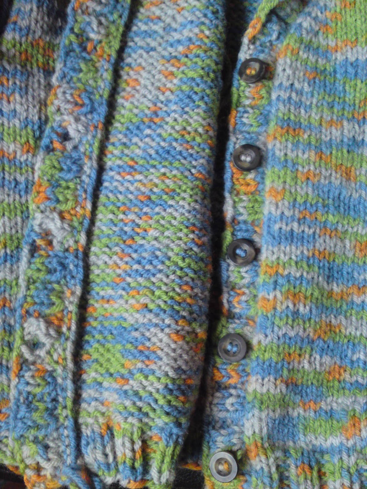 Já me esquecia do quanto é rápido tricotar e também aborrecido costurar peças em tricot ;o) Falta-me costurar as mangas, mas já coloquei botões no casaco, que mais parece um robe, fica enorme no meu filhote, tal como eu suspeitava um pouco grande na largura, na altura que comecei enganei-me na metragem da lã e não quis desmanchar. É sem duvida um casaco que o vai ver crescer LOL