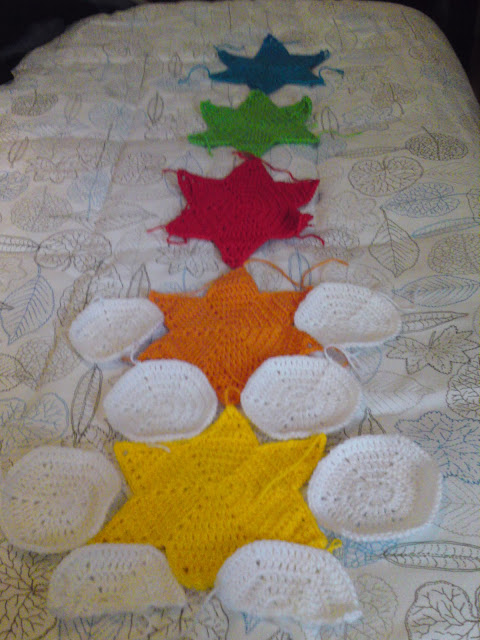 No último post revelei que ando a fazer hexágonos novamente, não quis esmorecer depois da manta de hexágono que ofereci neste Natal, à alguns meses que quero muito fazer uma manta de estrelas para o meu filho e o facto de não ter nenhum projecto trabalhoso no momento decidi começar de vez esta manta.