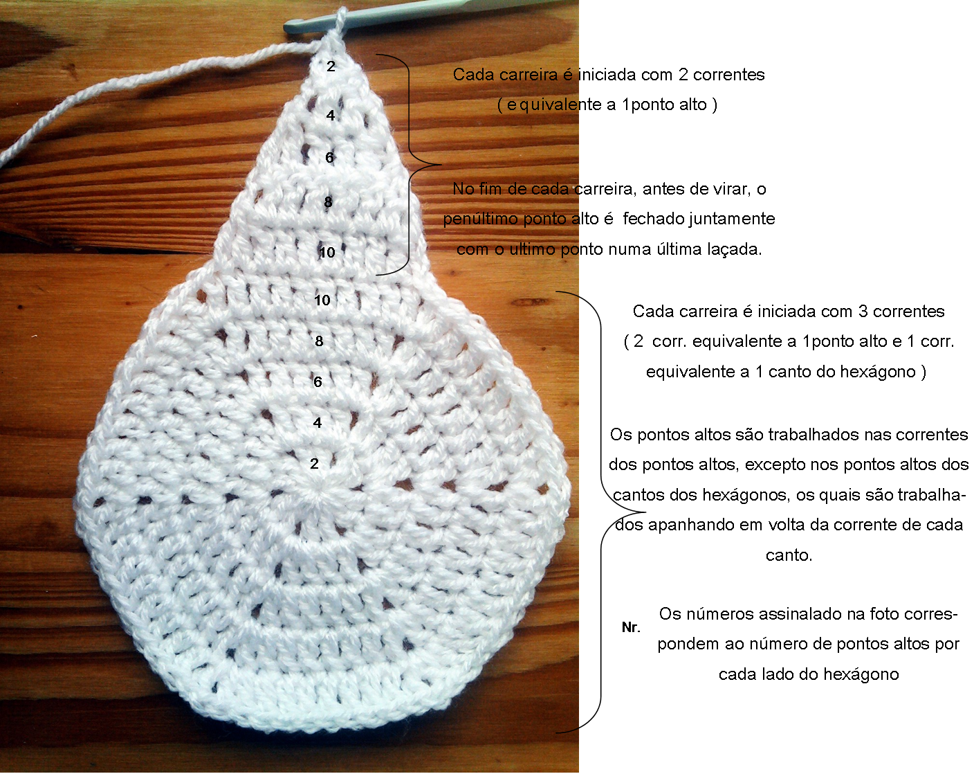 | 2 correntes serão o último ponto alto e a 3ª corrente o canto do hexágono |