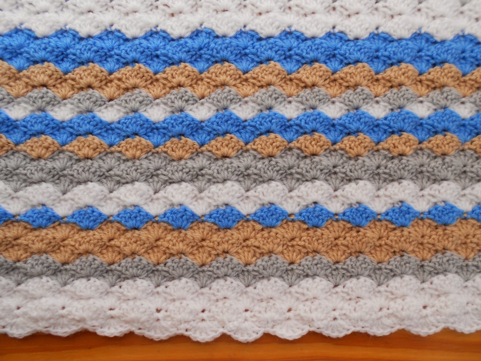 Terminei à pouco a manta que quis que combinasse com a 1ª roupinha do meu bebé, ficou pequenina (60cm x 48 cm) mas era o que queria, que fosse leve, fácil de transportar numa mala e do tamanho suficiente para o agasalhar quer no ovo ou alcofa. A disposição de carreiras foi aleatória até a meio da manta depois fiz o efeito «espelho» do que já tinha feito anteriormente. Pensei em não fazer um bordo decorativo já que o esquema deixa o mesmo bem definido e acabado mas optei por fazer um simples com sucessão de 3 correntes e 1 ponto baixo numa 1ª carreira em toda a volta e depois numa 2ª carreira, no sentido do comprimento, manter os conjuntos de 5 pontos altos (que usei para fazer a manta) que juntamente com as correntes da carr. anterior dá ideia de ter mais 1 ponto alto de cada lado, mantendo a sobreposição do efeito «concha» do ponto, e nas laterais da manta 3 pontos baixos em cada espaço de 3 corr. mas com um ponto baixo cruzado nos pontos baixos que separam as correntes. Fiquei embevecida com o resultado final ;o)