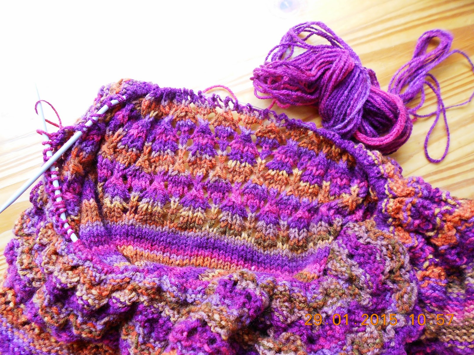 e imagino demorar mais 1 semana para terminar este xaile... quase 300 malhas em cada carreira demora muito para avançar e optei por fazer menos 1 repetição do 1º gráfico e passei logo para o 2º que é o que finaliza a peça. Ansiosa de tirar estas malhas das agulhas, lavar, bloquear e ver o efeito final ;o)