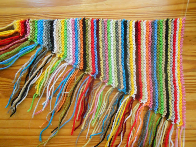 Obrigada Nina, será umas férias de publicar e de vir aqui tão amiude para ler. Depois quero fazer outras coisas que apaixonam-me igualmente mas que nunca partilho por cá pois isso seria mais uma razão para passar ainda mais tempo em frente ao computador e com o bom tempo que se faz sentir, dias compridos não apetece mesmo nada, além do mais a minha casa é um forno da parte da tarde e já me vai custando estar mais de 5 minutos com o computador ligado. este trabalho é uma muito boa solução para pequenos novelinhos de lã que habitam pela casa até mesmo 2 palmos de fio chegam para fazer as 2 voltas que se faz com apenas uma cor, principalmente nas carreiras mais curtas. Caso não tenhas visto, o modelo é este: http://www.ravelry.com/patterns/library/riot-2