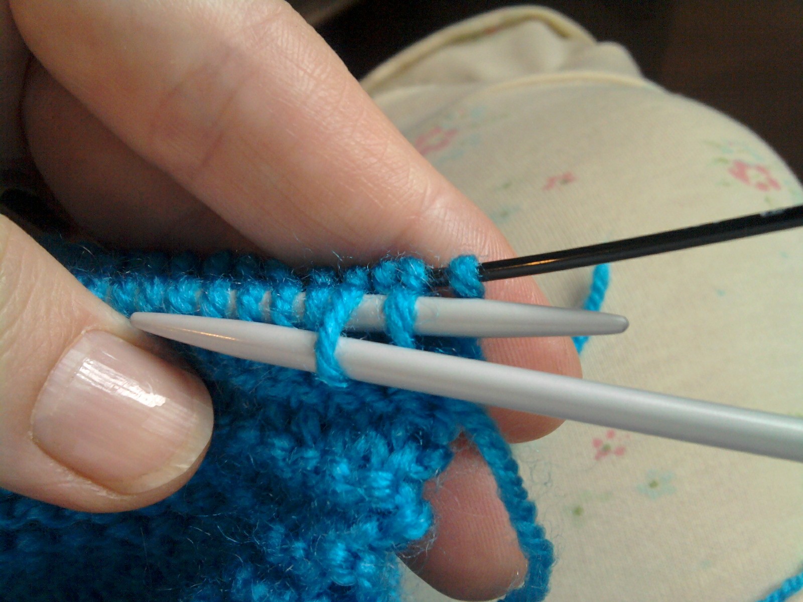 | na imagem pode notar-se a 3ª malha mais larga, depois começasse a tricotar normalmente |