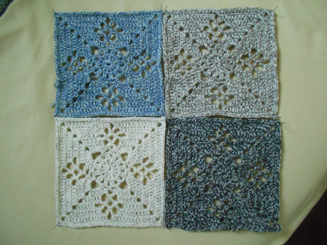 Os quadrados, outra beleza, no fim não se notará a diferença de tensão do ponto, acredito! As rosetas do xaile, estou encantada com o ponto e os tons são muito delicados, além disso adoooro xailes!