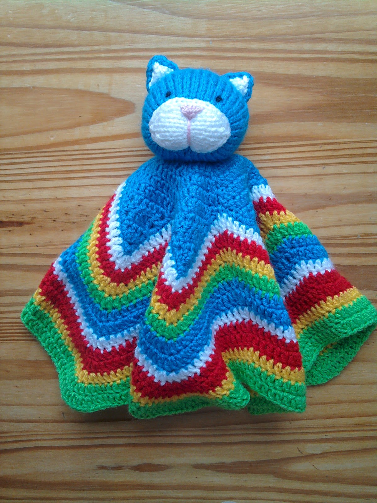 Esta era para ser uma almofada que se transformou em Dodou primeiro todo em crochet mas depois decidi empregar a cabeça do Boy cat da Julie Williams. Este Doudou irá alegrar os meus dois amores, já que fiz os 2 gatos em tricot e a gata era para o meu filho mais novo mas o mais velho decidiu ficar com ele. Ficará para quem se quiser abraçar a ele ;o) Estava sem nome, até à pouco, e lembrei-me de dar o nome de um gato que tivemos, era amarelo, este é azul porque achei que ficava melhor por causa da estrela, será o Totó !
