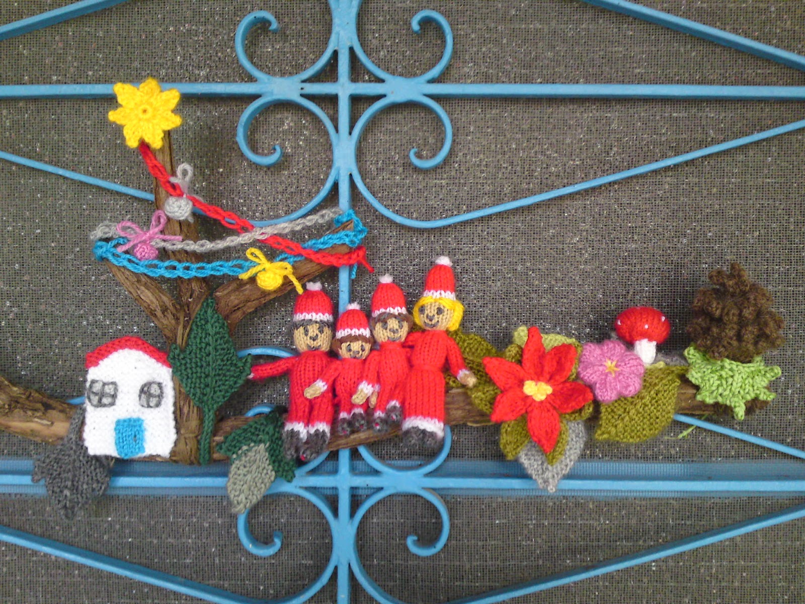 Gostava de vir cá mostrar-vos a decoração já pronta mas ainda não está. Como não é hábito meu publicar no fim de semana, mostro-vos como está a decoração neste momento, falta um espaço por preencher, provavelmente terá flores e folhas, pois para elas tenho cores, o que tenha castanho não posso fazer. Tenho usado lãs acrílicas, a pinha é de lã natural (mas é uma lã grossa) e também usei algodão desmanchado de algumas amostras de granny squares que fiz e de fios de meio ponto que tinha de sobra de um trabalho que fiz à já alguns anos. Este é sem duvida um trabalho para gastar o que se tem de sobras e inicialmente não estava pensando fazer uma mini representação da nossa família e tinha (tenho) em mente cortar umas letras em feltro a dizer Feliz Natal penduradas no tronco. Este fim de semana vamos montar a árvore de Natal e as meias que fiz já estão costuradas agora só estão à espera de serem penduradas junto com os outros enfeites ;o) Bom fim de semana !