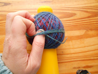Nem sempre sinto a necessidade de fazer novelos, nunca comprei sequer meadas para tricotar, mas por vezes encontro novelos que mesmo retirando a lã do centro do novelos o fio corre mal do centro ou então para encontrar o fio por dentro tenho que tirar uma grande parte da lã ou então ainda os novelos têm muita tendência de perderem forma com o uso e isso aconteceu-me com a lã matizada que estou a usar para estes quadrados em tricot. Recentemente fiz também um novelo com uma lã que já tinha feito experiências e depois voltei a enrolar por fora do novelo, mas ao usar de novo a lã custava a desenrolar e emaranhava-se facilmente e achei boa ideia fazer um novelo da forma como aprendi inicialmente, através do site Tejiendo Peru (canal de youtube aqui), voltei lá para procurar o vídeo com que inicialmente aprendi, mas colocaram um outro que ensina 2 formas, uma em que se começa entrelaçando em dois dedos e depois enrolando e dando forma esférica, e a forma que adopto sempre quando quero fazer novelos, usando uma agulha grossa de tricot ou um pau de espessura larga. O bom deste último método de fazer novelos é que podemos usar as duas pontas sem grandes problemas, já nos novelos em forma mais ou menos cilíndrica não é tão fácil usar a ponta de fora do novelo quando se tem a ponta de dentro em espera. Há quem use esta técnica para tricotar meias, para uma usam o fio de dentro e para a outra o fio de fora e não há grande acidentes ou dores de cabeça quando se trabalha assim.